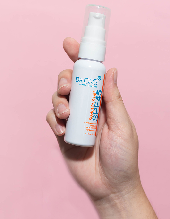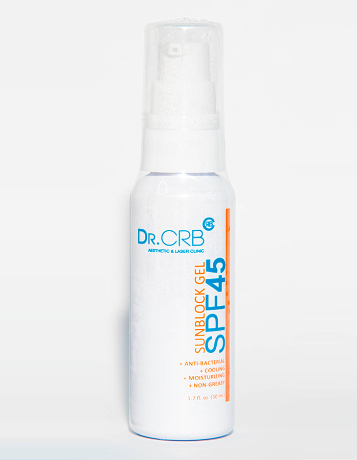 Our Sunblock Gel SPF45 comes in a non-greasy formula with anti-bacterial, cooling and moisturizing. Suitable for everyday use on the face for all skin types. To use this sunblock with makeup, apply it after skincare and before primer or foundation.