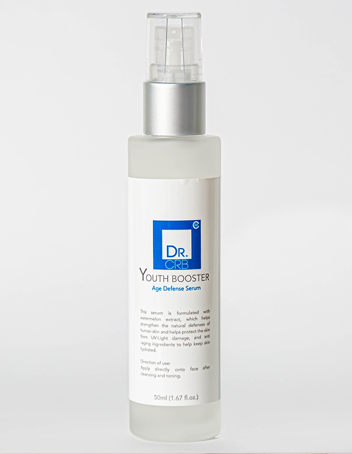 Dr. CRB Youth Booster Age Defense Anti Aging Serum is formulated with Pepha-Protect (watermelon extract, rich in vitamins, carbohydrates, and amino acids) which helps protect skin from UV damage on a cellular level.